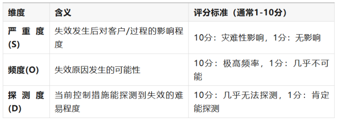 RPN = 严重度(S) × 频度(O) × 探测度(D)