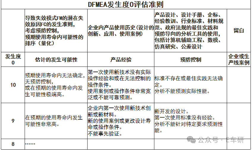 DFMEA常见预防控制: