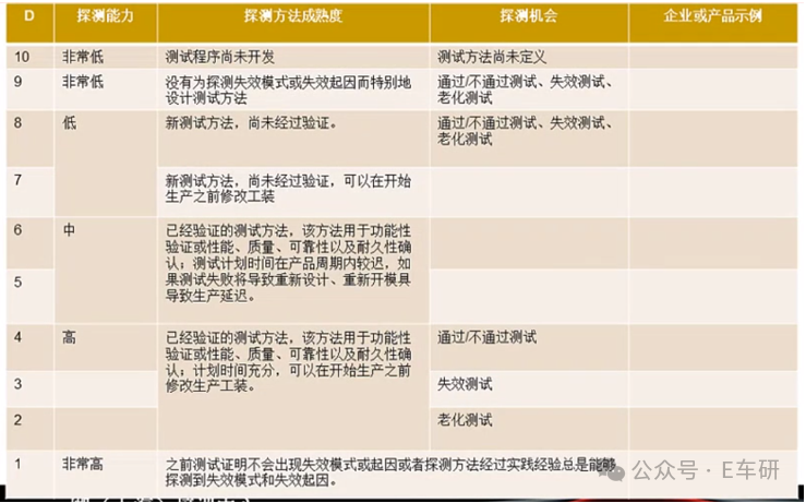 DFMEA常见探测控制: