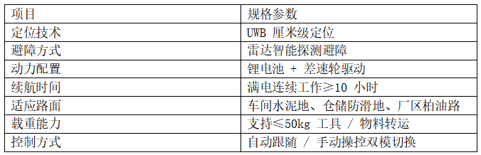 采用UWB(超宽带)厘米级定位技术,自动锁定并锁定目标人员,无论身处光线变化、信号复杂的环境,都能实现实时追踪随行,确保跟随精准无偏差,彻底告别传统牵引式小车的束缚与回头确认的烦恼。